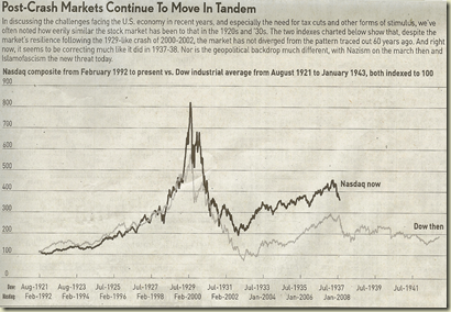 IBD has been noting the similarities between today's market movement and the 1920's - 1930's. Bill O'Neil also mentioned this on 2/12 on the Tom O'Brien radio show. It's a common practice IBD, O'Neil, and his portfolio managers to look for tandem charts. As an example, O'Neil saw the potential in Crocs by looking at the past winners LA Gear and Rebok. It should be interesting to see is Visa will tandem itself with Mastercard
